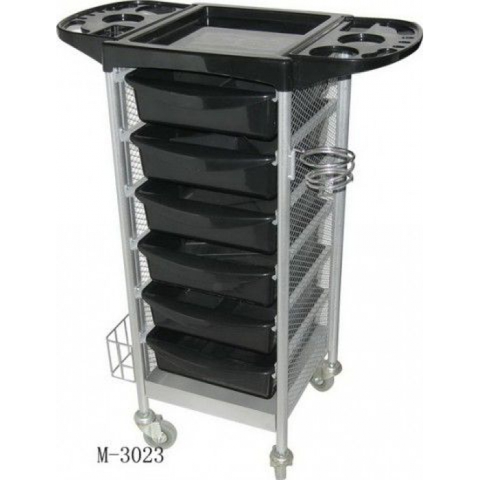 Тележка Asf общим весом 11,5 кг, укомплектована всем необходимым для мастера, а именно, выдвижными пластиковыми ящиками, панелями для расчесок, двумя чашами под краску, держателем под фен, даже держателем под полотенца разных размеров. Транспортируется тележка благодаря легким, пластиковым колесикам. Хороший вариант для парикмахеров и косметологов, прочная, высокая, мобильная, лучшей модели не найти, общая высота 92 см. Тележка хорошо поддается чистке различными дезинфицирующими средствами, не царапается основание и ящички, просто незаменимый помощник для абсолютно любого специалиста. Модель применяют для транспортировки и сохранности разнообразных приборов, аппаратуры и всевозможных аксессуаров.