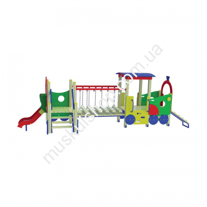 В большой паровозик с вагоном Интер Атлетика TE503 можно поместить всех друзей вашего непоседы и отправиться в увлекательное путешествие. Оснащен паровозик поручнями во время поездок и поднятия, а также горкой для крутого и молниеносного спуска. Игровой комплекс представлен в разноцветных тонах, выполнен с прочного, качественного и натурального дерева, с добавлением стали и фанеры. Для лучшей фиксации комплекса, необходимо забетонировать основание. Материалы качественные и после нескольких годов интенсивной эксплуатации, такая детская горка не поменяет свой первоначальный облик. Общая масса изделия составляет 225 кг, способно выдержать общую массу в 80 кг, идеальный вариант для детишек от 2-х до 7 лет, устанавливается в помещениях, дачах и загородных комплексах, базах отдыха, детских лагерях, возле водоемов.