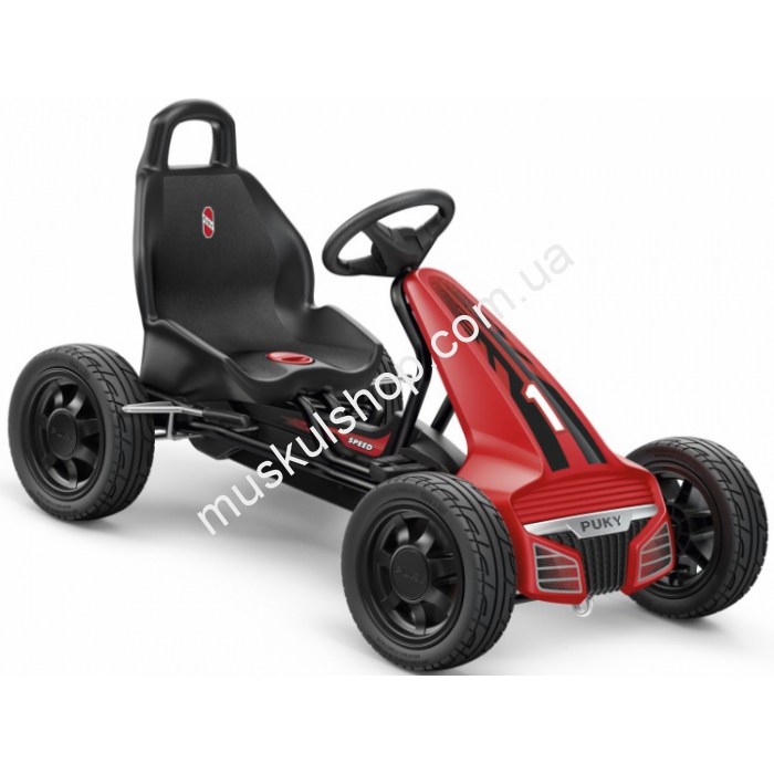 Машинка Puky педальная модель F550L комплектуется анатомическим сиденьем, передним спойлером, бампером, надувными колесами, ручным тормозом, цепью и натяжителем, спортивными дисками на шариковых подшипниках, а также спортрулем с настоящим сигналом. Отлично подходит машинка для тренировок своей силы, накачки группы мышц и приятного времяпровождения. Данная модель рассчитана на детишек с ростом до 120 см, способна выдерживать общую нагрузку в 50 кг, а при этом ее вес не более 16 кг. Срок гарантии на веломобиль составляет 12 месяцев, а также он выполнен из прочного алюминиевого сплава. Машинка представлена в красном цвете, обладает реверсным ходом педалей.