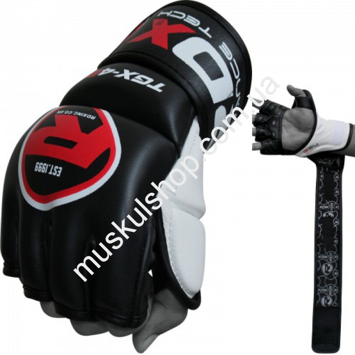 Перчатки RDX ММА отличается от других надежной защитой большого пальца. Данная модель пошита из качественной, эластичной и прочной кожи типа Nappa, исключительно ручным методом, все изделия из этой кожи относятся к элитному разряду. Набивка выполнена из интегрированного геля. Фиксируются при помощи длинной липучки. Модель хорошо адаптирована под узкое запястье спортсмена. Перчатки хорошо защищают руки, обеспечивая комфортное расположение рук, убирая полностью риск получения различных травм. Можно заказать различные размеры, под заказ, выполнены в черном цвете. Перчатки необходимы для оттачивания техники нанесения удара и работы на различных снарядах. Материал подкладки хорошо выводит влагу наружу, а также обладает хорошим терморегуляторным эффектом.