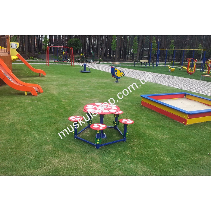Стол со стульями Inter Atletika идеально подходят под любой тип песочницы, их можно установить во дворе загородного домика, садика, базы отдыха и обычных дворов. Размеры столика составляют 1,1 на 1,1 м, высота почти 1 м, подходят для детских игр, складывания пазлов, основание должно быть забетонировано для лучшей фиксации либо закреплено болтами. Под свое размещение такому комплекту понадобится минимум площади, но за это дети отблагодарят вас теплыми улыбками, смехом и хорошим настроением. Общий вес грибка столика со стульями 32 кг, используется для игр детишками от 2-х до 12-ти лет, выполнена модель с прочной, качественной и надежного дерева в разноцветных тонах.