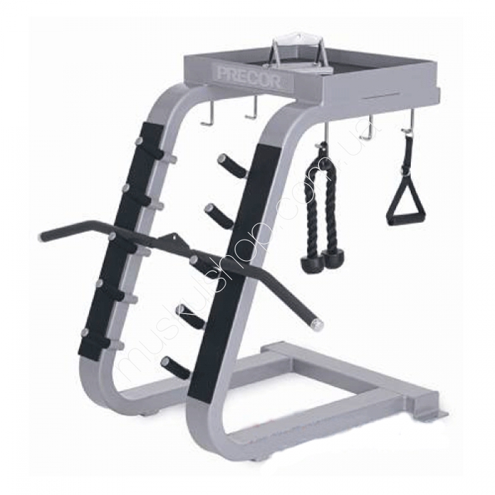 HoistПодставка для рукоятей и аксессуаров Precor 818Подставка для рукоятей и аксессуаров Precor 818 отличается своим универсальным дизайном, а также необычной и уникальной формой. Внешнее покрытие изделия надёжно защитит его от любого негативного воздействия, в особенности, от влаги и возможности появления коррозии. Устойчивость данного аппарата обеспечивается за счёт наличия подпятников, которые не позволяют ему скользить по напольному покрытию. Сама форма оборудования позволяет разместить достаточно большой груз без какого-либо негативного влияния.