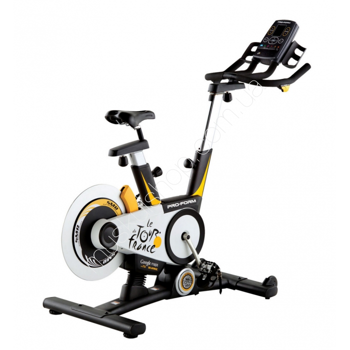 Велотренажер ProForm Tour de France оснащен 3,5” цветным экраном с функцией TouchScreen, на который выводятся данные программ тренировки, а также карта местности Google Maps. Тренажер совместим с iPod – можно управлять списками музыки прямо с консоли тренажера и смотреть видео на его экране.