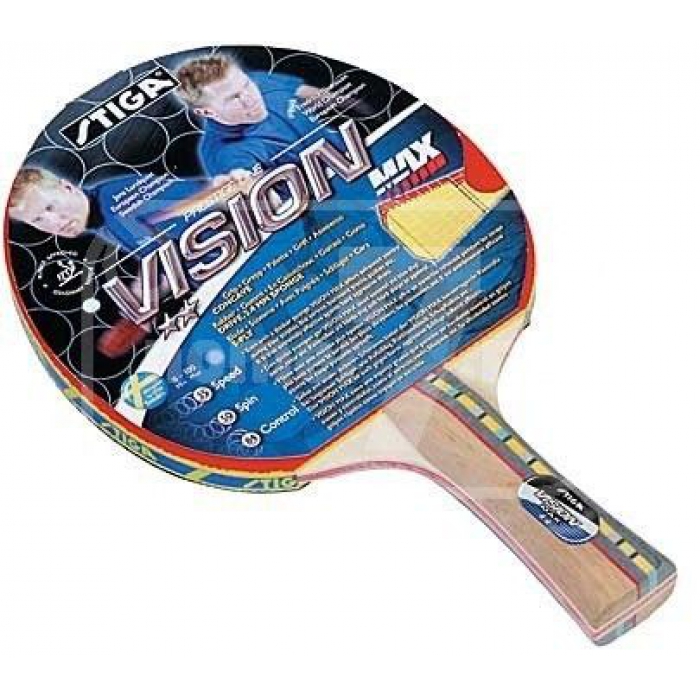 Теннисная ракетка Stigа модель Vision Max имеет вес всего 160 кг, позволяя наносить точные, жесткие и агрессивные удары в моменты игры, а также позволит отточить уже получено ранее мастерство. Толщина губки ракетки равна – 2,5 мм. Модель ракетки представлена в красном цвете. Как видно, шведский бренд предусмотрел все до мелочей, а именно: прямую ручку, которая плотно сидит в руках теннисиста. Накладка ракетки выполнена из качественной и плотной резины. Ракетка нивелирует множество ошибок, которые допускают начинающие игроки настольного тенниса. Ракетки средних характеристик, придется по душе начинающим игрокам-любителям. Ручка анатомической формы, расклешенная.