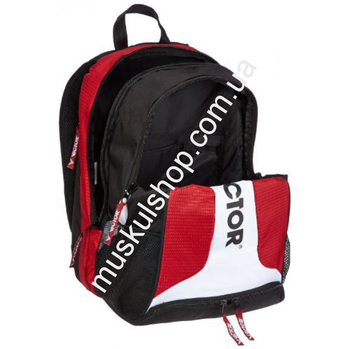 Рюкзак Viktor очень легкий, подойдет любителям настольного тенниса, сквоша либо бадминтона, лучшего подарка просто не отыскать, одним словом для людей, которые ведут активный образ свой жизни. Состоит рюкзак из нескольких, больших отсеков, в одном из них можно спрятать спортивную одежду и обувь. Для удобства носки предусмотрены мягкие вставки. Для транспортировки предусмотрены ручки, это даем возможность нести его, забросив себе на плечо. Рюкзак очень быстро сохнет, не влияет на солнечные лучи, не выгорает, очень прочный. Выполнена сумка из прочного и качественного полиэстера. В скрытом кармане рюкзака можно носить пару ракеток для игры.