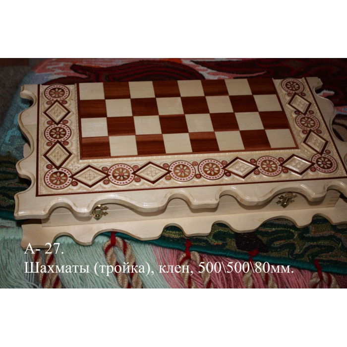 Шахматы Мастер А-27 дерево изготовлены резьбовым методом, исключительно руками, не содержат вредных веществ, красок и прочих химикатов, вредных человеческому организму. Модель изготовлена с прочной, влагостойкой и долговечной породы дерева – клена. Они хорошо ложатся в руку, не выскальзывают, плотно прижимаются к доске, в меру тяжелые. Настольные шахматы станут хорошим подарком на дни рождения, юбилеи, игры в семейном кругу либо на природе. Шахматы приучают людей к логическому мышлению, вырабатывают усидчивость, силу воли, позволяют просчитать несколько ходов наперед и одержать долгожданную победу. Шахматы выполнены в классическом стиле, хорошо подойдут для игр во время езды либо других путешествиях. Они обладают квадратной формой поля, размерами нескольких 50 на 50 см, высота 8 см.