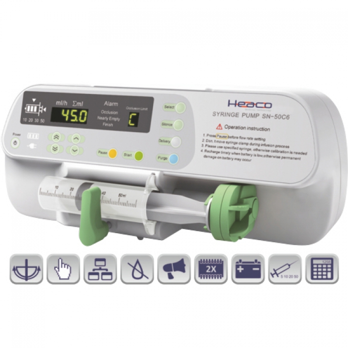 - Шприцевой насос работает с шприцами любых производителей обемом 10, 20, 30 и 50 мл.