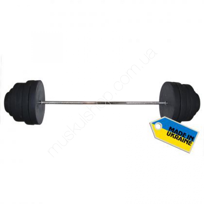 Комплектация: гриф прямой, диски 15 кг - 4 шт, 10 кг - 4 шт, 5 кг - 2 шт, 2,5 кг - 2 шт