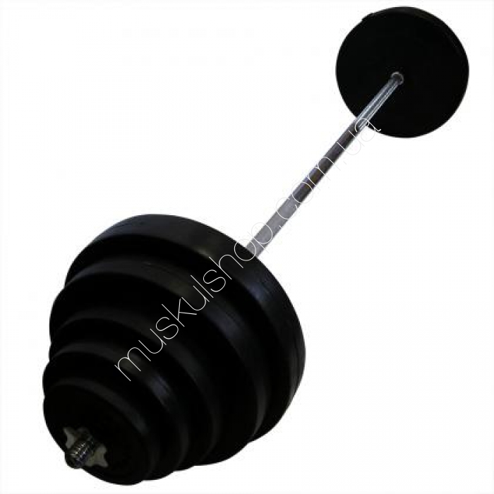 Комплектация: гриф прямой, 2 диска по 15 кг, 2 диска по 10 кг, 2 диска по 5 кг,2 диска по 2,5 кг, 2 диска по 1,25 кг