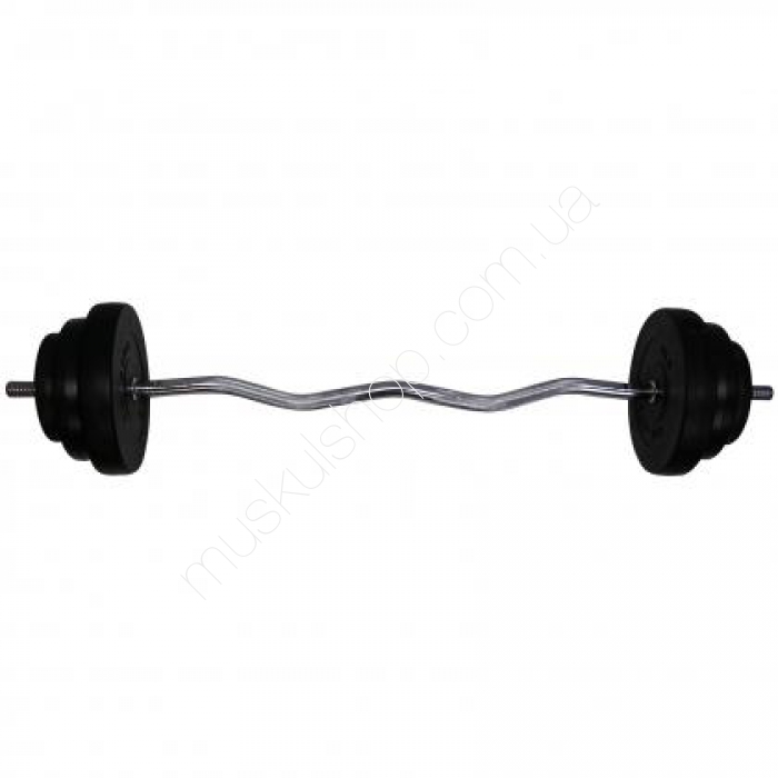 Комплектация: гриф w-образный, диски 5 кг - 2 шт, 2,5 кг - 4 шт, 1,25 - 2 шт