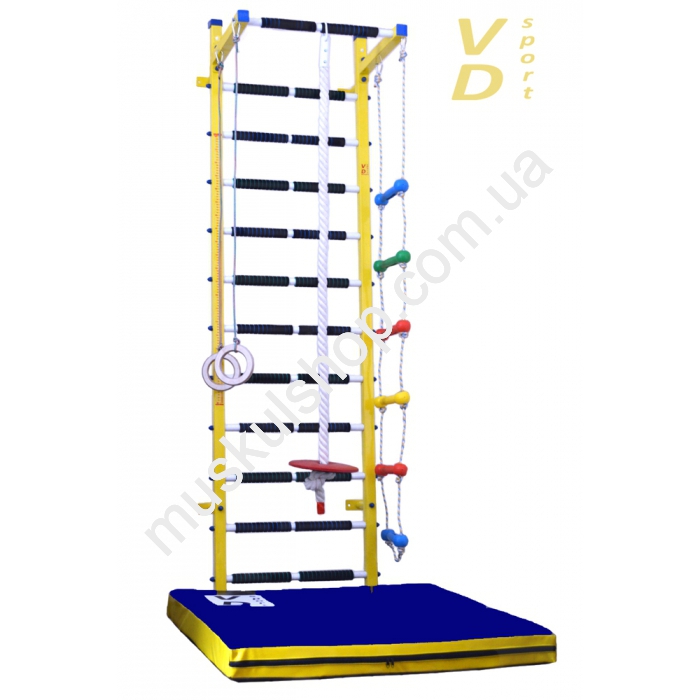 ВД-СпортШведская стенка Тигренок ВД-СпортДетская шведская стенка Тигренок порадует Вашего малыша, ведь подходит она деткам от 2 лет. Расстояние между нескользскими перекладинами меньше, чем в обычных стенках. Плотный мат, зафиксированный за основание стенки, обезопасит ребенка во время его упражнений. Опционально возможна доукомплектация детским боксерским мешком и веревочной лестницей.