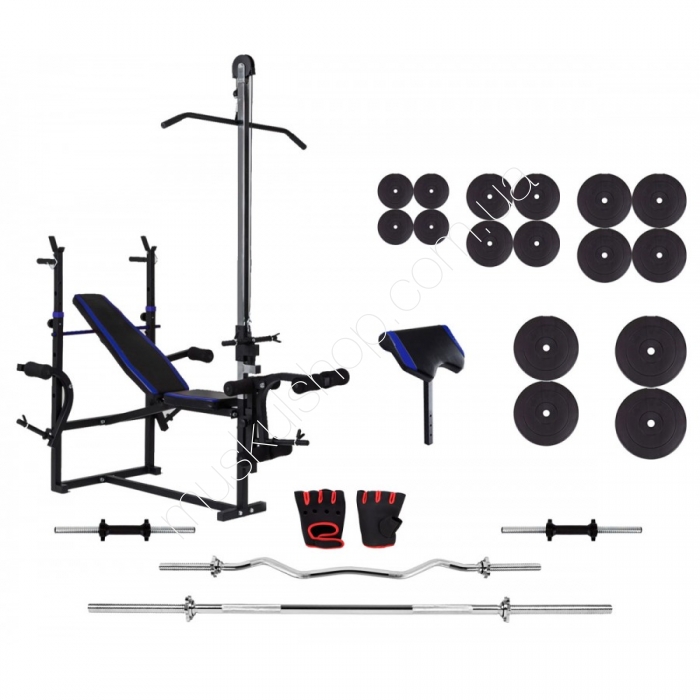Скамя Fit-On с партой скотта и тягой + неопреновые перчатки