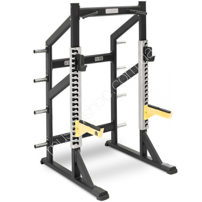 Master-SportСиловая стойка Master-Sport NS 17Силовая стойка Master-Sport NS 17 оборудование, которое позволит спортсмену выполнить широкий спектр самых разнообразных упражнений с применением штанги. Представленное оборудование может служить одновременно и как тренажер, и в качестве подставки под снаряды. С использованием такой модели приспособления вы сможете выполнять упражнения на приседания со штангой и жим, если укомплектовать его скамьей. Силовая стойка Мастер-Спорт НС 17 отличается своей крепкой стальной конструкцией, которая может выдерживать большой вес снаряда. Конструкционные особенности оборудования обеспечивают его устойчивость и безопасность для пользователя во время тренировок. Благодаря металлическим держателям вы можете свободно размещать на них снаряд для возможности его удерживания и хранения.