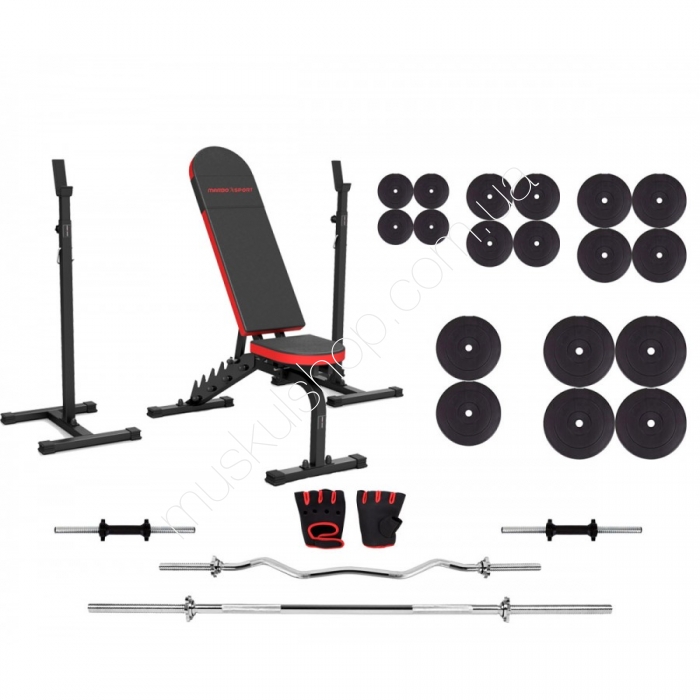 В наборе: скамья Marbo Sport MH-L114 + стойки под штангу MH-S001 + перчатки + штанга 161 кг