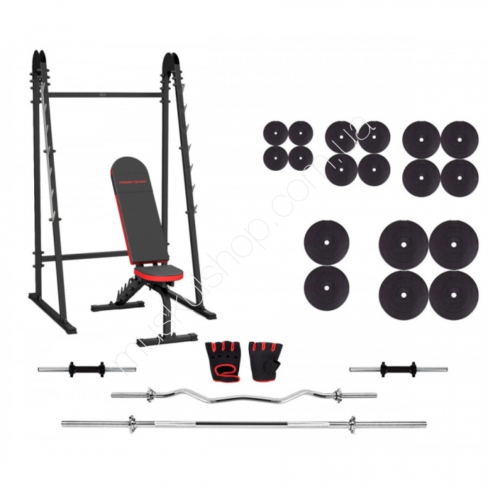 В наборе: скамья Marbo Sport MH-L114 + стойки под штангу MH-S104 + перчатки + штанга 177 кг