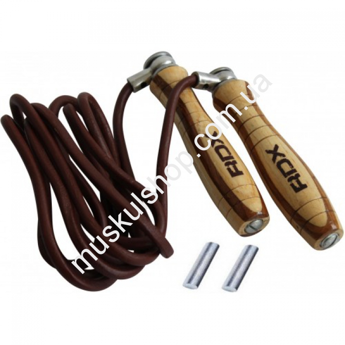 Скакалка RDX комплектуется быстрыми стальными шарнирами, они призваны обеспечить правильную скорость скакалки. Общая длина составляет 270 см, представлена в коричневом цвете. Занятий с таким инвентарем развивают у боксеров и других бойцов координацию движений, тренируют сердце, общий уровень выносливости организма, а также укрепляют мышцы групп ног и рук, а также грудной клетки и пресса. Кроме этого разогревают мышцы перед важным боем. Изделие пользуется большей репутацией среди спортсменов и комплектуется всем необходимы сертификатами международного качества. Рукоятки скакалки выполнены из дерева, а нить скакалки из качественной, тонкой кожи. С целью тренировки кистей рук, внутри ручек размещены утяжелители.