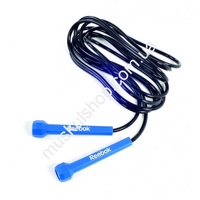 Скакалка Reebok отличается от других стильным дизайном, прочностью и эластичностью, выполнена в черно-синем цвете, общей длиной 3 м из прочного нейлона. Ручки эргономические, изготовлены из полипропилена. Инвентарь поможет подтянуть ягодицы, икры, мышца груди и поясницы, а также оказать положительное влияние на легкие спортсмена и его сердце, поднять тонус. Скакалка также подходит для занятий на природе и домашних условиях, спортзале. Данный инвентарь увеличивает ловкость рук, скорость мышц, эластичность и повышает выносливость организма. Без скакалки не проходит ни одна тренировка бойцов, любителей аэробики, а также фитнес-упражнения.