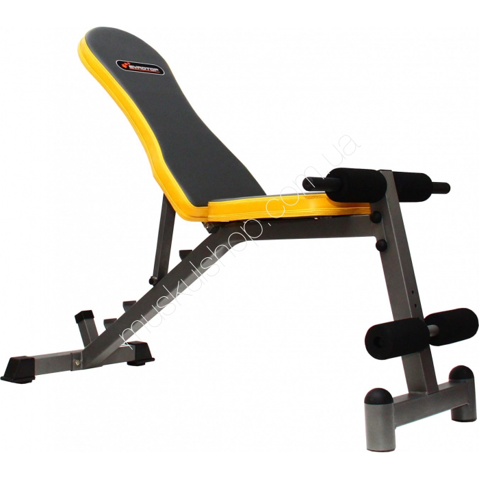 EvrotopСкамья для пресса Evrotop EV-106Скамья для пресса Evrotop EV-106 оснащается рядом практичных решений, что позволяет ей занять достойное место среди тренажеров данного класса. Её высокое качество и надежная конструкция позволили значительно продлить возможный срок использования данной скамьи. Основной материал оборудования это высокопрочный металл, что позволяет скамье работать с большими нагрузками. Скамья для пресса Евротоп ЕВ-106 имеет практичные размеры, что обеспечивают простоту установки и эксплуатации данного оборудования в домашних спортивных уголках. Важным аспектом для комфортной эксплуатации можно назвать возможность наклона спинки, которая позволяет регулировать по уровню сложности тренировки с использованием гантелей, штанги и других снарядов. Спинка скамьи оснащена специальной подложкой с поверхностью, что не натирает и способна блокировать излишнее потоотделение.