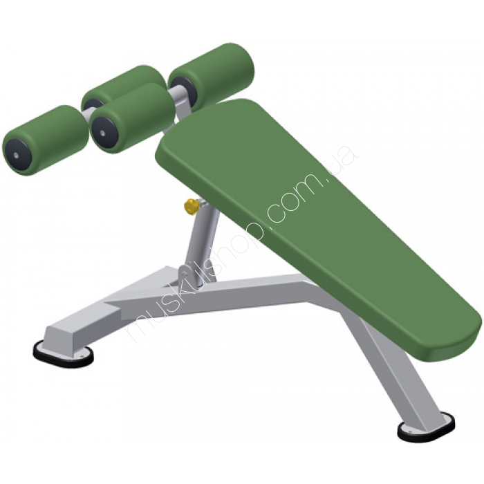 FGMAСкамья для пресса FGMA ТК 112Скамья для пресса регулируемая FGMA ТК 112 оснащается валиками для ног, которые обеспечивают фиксацию пользователя так, чтобы не упасть со скамьи и не травмироваться. Мягкая часть скамьи покрыта устойчивой к деформациям эко кожей, которая не токсична и не вредит здоровью. Форма представленной модели скамьи дополнительно обеспечивает нагрузку для скорейшего достижения результата. Мягкие накладки на ножках выполняют роль фиксаторов скамьи в более устойчивом положении, чтобы она не скользила на полу. Скамья для пресса регулируемая ФГМА ТК 112 идеальное оборудование, которое предназначается для тренировок на развитие мышц брюшного пресса. Удобная конструкция и небольшие габариты представленного оборудования способствуют его установке даже в маленьком помещении, к примеру, в домашнем зале.