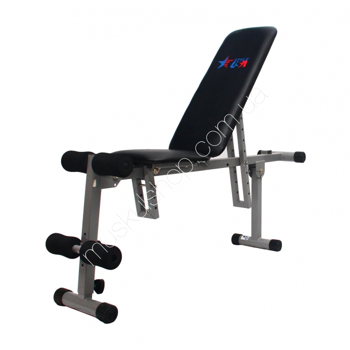 USA StyleСкамья для пресса USA Style SS-013Скамья для пресса и жима универсальная USA Style SS-013 оснащается рядом практичных решений, что позволяет ей занять достойное место среди тренажеров данного класса. Её высокое качество и надежная конструкция позволили значительно продлить возможный срок использования данной скамьи. Основной материал оборудования это высокопрочный металл, что позволяет скамье работать с большими нагрузками. Скамья для пресса и жима универсальная ЮСА Стайл СС-013 имеет практичные размеры, что обеспечивают простоту установки и эксплуатации данного оборудования в домашних спортивных уголках. Важным аспектом для комфортной эксплуатации можно назвать возможность наклона спинки, которая позволяет регулировать по уровню сложности тренировки с использованием гантелей, штанги и других снарядов. Спинка скамьи оснащена специальной подложкой с поверхностью, что не натирает и способна блокировать излишнее потоотделение.