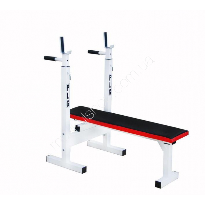 PLGsportСкамья горизонтальная PLGsport K-033Скамья горизонтальная складная PLGsport K-033 предназначается для выполнения упражнения на жим, которое позволит вам натренировать мышцы рук, плечевого пояса, а также спины. Представленное оборудование универсально и, хоть чаще всего оно используется с коммерческой целью, но вы также можете установить такую скамью у себя дома, ведь компактные габариты поспособствуют её комфортному размещению в комнате. Скамья горизонтальная складная ПЛГспорт К-033 оснащается мягкой скамьей и стойкой, на которой можно разместить штангу и хранить её в то время, как вы отдыхаете от тренировок. Мягкие части скамьи покрыты износостойкой эко кожей, а внутреннее наполнение в виде поролона способно быстро восстанавливать форму, обеспечивая комфорт во время занятий со штангой.