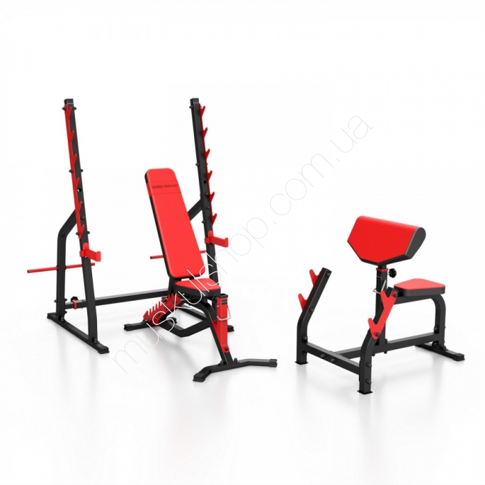 Скамья со стойками и партой Скотта Marbo Sport MS6, помимо самой скамьи и стойки, оснащается также и скамьей Скотта для работы с гантелями и более компактной штангой. При создании конструкции набора использовался стальной профиль с порошковым напылением для защиты. Отличие в гибкости эксплуатации набора можно достигнуть при применении регулировки положения стоек. Безукоризненно качественная рама и обивка из кожзаменителя обеспечивают продуктивность и износоустойчивость тренажера, позволяя выдерживать повышенную нагрузку. Скамья со стойками и партой Скотта Марбо Спорт МС6 станет надежным решением для большинства спортсменов с любым уровнем подготовки, что позволит поддерживать свое здоровье и физическую подготовку на высоком уровне. Все компоненты такого набора оснащены таким необходимым элементом, как резиновые накладки на ножках для исключения скольжения по полу.