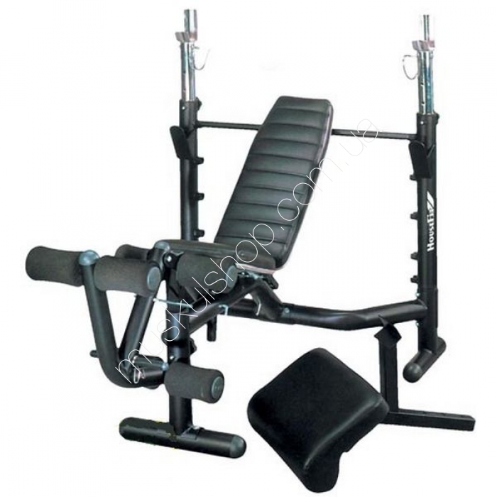 House FitСкамья под штангу Housefit DH 8131Скамья под штангу Housefit DH 8131 позволяет любому пользователю проводить занятия со штангой, для которой предусмотрена стойка. Каркас данного аппарата создан из прочного металлического сплава с учётом всех необходимых стандартов качества, которые применяют даже в Европе. Трубы каркаса в местах соединения усилены, дабы сам тренажёр был способен выдерживать повышенные нагрузки. Для того, чтобы тренажёр не нуждался в креплении, но находился всегда в устойчивом положении, он был оснащён амортизирующими подпятниками.