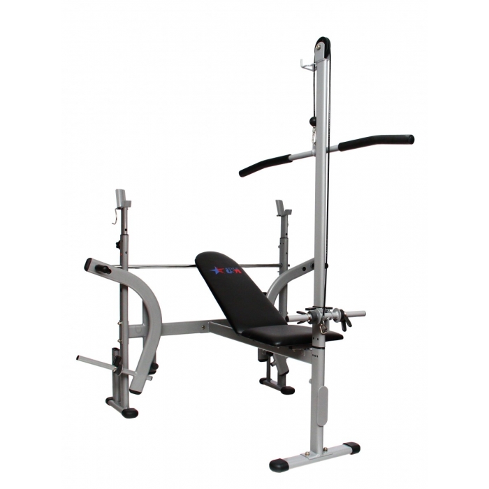 USA StyleСкамья под штангу USA Style SS-308Скамья под штангу компакт+тяга сверху+батерфляй USA Style SS-308 способна создать комфортные условия для тренировки за счет наличия всех необходимых узлов, дабы гарантировать удобство. Это также позволит наиболее правильно подстроить тренажер под вашу анатомию. Примером тому можно назвать способность спинки тренажера принять одну из нескольких имеющихся позиций. Благодаря высоким техническим характеристикам данной скамьи, она является уникальной и подходит для компактной установки. Все мягкие участки, что соприкасаются с телом пользователя, покрыты специальной прочной обивкой, что не натирает и тактильно приятна. Скамья под штангу компакт+тяга сверху+батерфляй ЮСА Стайл СС-308 имеет компактную конструкцию, что важно для удобства хранения, а также позволяет проводить результативные тренировки на развитие всех основных групп мышц.
