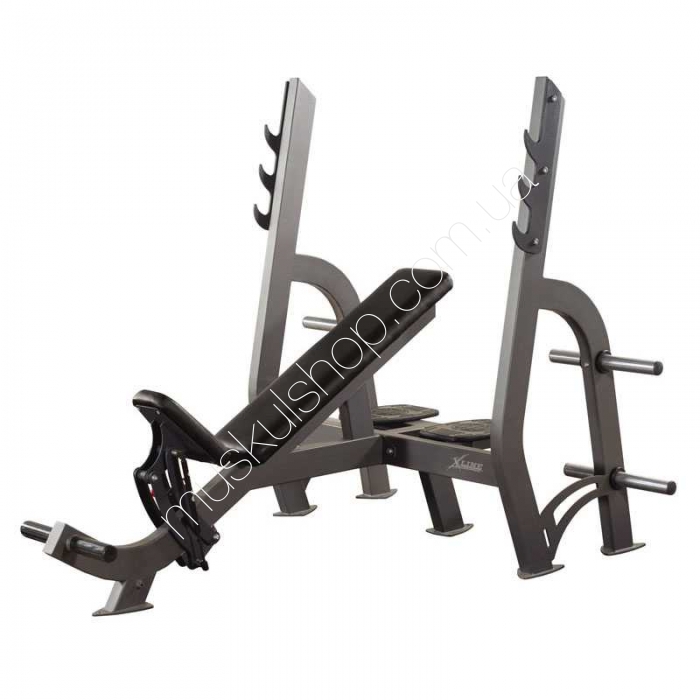 Скамья под жим под углом вверх InterAtletika X-Line X305 способствует максимально эффективной проработке всех основных групп мышц, как верхнего, так и нижнего пояса, в зависимости от типа выполняемых упражнений. Мягкое сидение обладает вспененным наполнителем, что легко принимает форму тела пользователя, и обивкой из искусственной кожи. Данный тип скамьи необходим для выполнений базового упражнения на жим, но может применяться также и для выполнения других упражнений. Покрытие металлического профиля при помощи порошкового напыления краской исключает опасность появления коррозии. Скамья под жим под углом вверх ИнтерАтлетика Икс-Лайн Икс305 это простой, но весьма эффективный тренажер силового типа, который вы можете использовать и для коммерции, и для домашних условий. Для обеспечения устойчивости представленного типа скамьи, на её ножках расположены небольшие резиновые подпятники, которые не позволяют ей скользить на напольном покрытии.