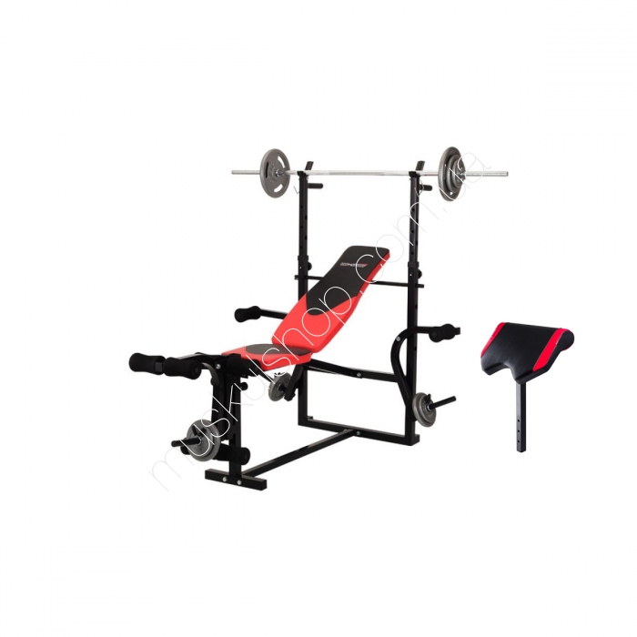 Скамья для тренировок с партой Hop-Sport HS-1070B это устойчивая и прочная сложная конструкция, в основе которой используется рама из стали, что способна выдерживать нагрузку с весом пользователя и с грузами. Конструкция оборудования покрыта порошковым напылением из краски, что придает устройству более солидный вид и позволяет защитить изделие от царапин. Общие габариты данной установки позволяют провести её размещение даже в небольших помещениях, а потому она подойдёт и для домашней эксплуатации. Скамья для тренировок с партой Хоп-Спорт ХС-1070Б относится к тренажерам, что разработаны специально для отработки горизонтального жима и жима под углом. С целью создания необходимых условий для комфортного хранения и эксплуатации силовая скамья оснащается фиксаторами для грифов. Небольшие подпятники, что размещены на ножках оборудования, не только обеспечивают устойчивость скамьи, но и служат как компенсаторы неровности напольного покрытия.