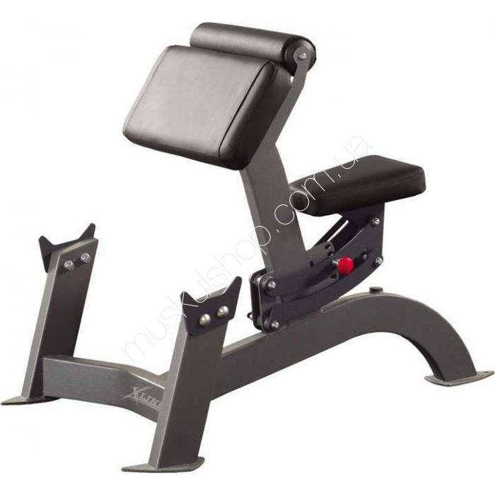Скамья Скотта InterAtletika X-Line X303M можно сравнить со скамьей для жима, но только с той разницей, что представленное оборудование используется для занятий с гантелями. Такая скамья оснащается двумя держателями под гантель, которые надежно способны удерживать гиф с большим количеством дисков на нем. Усиленная рамная конструкция прекрасно подойдет для работы с большим весом, поскольку она не будет деформироваться от повышенных нагрузок. Скамья Скотта ИнтерАтлетика Икс-Лайн Икс303M поддается быстрой регулировке, что позволяет настроить её под рост каждого отдельного пользователя. Мягкая парта, расположенная под углом, обеспечит не только комфортное, но и анатомически правильное положение рук при тренировке. Особенность такой скамьи заключается в том, что вы можете тренировать рука как отдельно, так и одновременно.