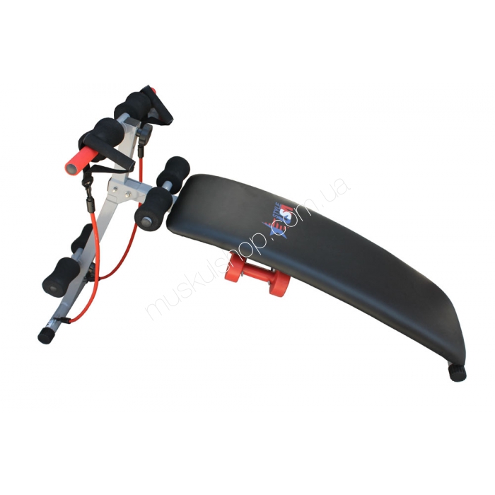 Скамья для пресса+жгуты+гантель USA Style SS-102-5 является универсальным средством для проведения эффективных тренировок мышц спины, работы над мышцами пресса, и для выполнения различных упражнений с использованием гантелей, если это потребуется. Сама скамья имеет наклонную форму, что повышает нагрузку во время выполнения упражнений и делает их более результативными. Валики для фиксации ног выполнены в мягкой обивке, и предотвращают возможность травмирования. Скамья для пресса+жгуты+гантель ЮСА Стайл СС-102-5 отличается своим современным и эргономичным дизайном, что способствует установке скамьи в помещении с любым интерьером, и небольшим весом для комфортной транспортировки. Благодаря вогнутой спинке, есть возможность выполнения широкого диапазона упражнений на выбор пользователя с применением дополнительных снарядов, к примеру, эспандеров, или силовых лент.