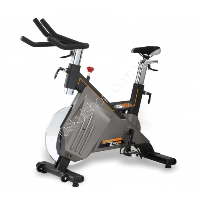 EuroFitСпинбайк Eurofit 8605Спинбайк Eurofit 8605 имеет преимущество для использования в коммерческих целях. Оборудование данной модели предназначено для спортивных залов и фитнес центров, что является отличной идеей, поскольку позволяет пользователю достичь хороших результатов в похудении и получении спортивного рельефа тела. Конструкция имеет компактные габариты, позволяя работать с максимальной нагрузкой. В основе работы тренажера лежит облегченная конструкция, благодаря чему обеспечивается более длительное и эффективное использование, чем у других стандартных моделей. Спинбайк Джимoст 8605 благодаря исключению контакта с маховиком обеспечивается не только бесшумность работы тренажера, но и плавный ход. Крепкая конструкция руля из нержавеющей стали имеет гипоаллергенное покрытие, что исключает раздражение кожи и впитывание пота.
