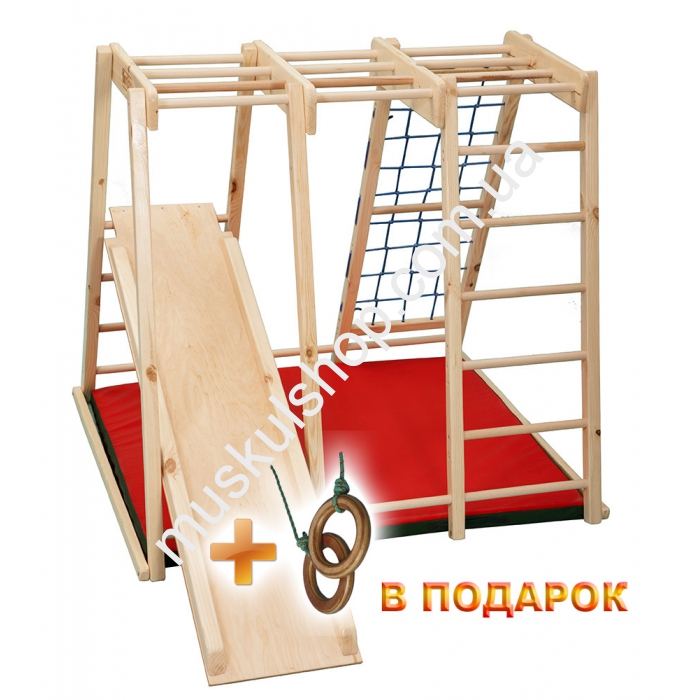 Детский домашний спорткомплекс Sportbaby Ромашка Мини лучший первый тренажер для вашего ребенка. Он заменит также детский уголок, внесет новые эмоции в жизнь малыша, наполнит силами его детский организм, а также поднимет иммунитет. Он комплектуется рукоходом, шведской и гладиаторской стенкой, 1,5 детской горкой для спуска, матом для упражнений и спортивными кольцами. Устанавливать такой комплекс можно в любом месте, большое пространство он не украдет. Все материалы имеют экологические сертификаты. Все детали выполнены из прочного сосны, а рукоход изготовлен из бука, данное изделие пропитано специальным антисептиком. Комплекс выдерживает нагрузку свыше 40 кг, при этом масса самого изделия не превышает 25 кг, отлично подойдет детишкам от шести месяцев до шести лет.