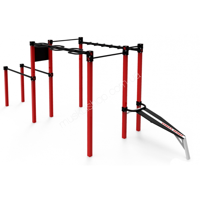 StreetSportСпортивный комплекс StreetSport S-10.1Спортивный комплекс StreetSport S-10.1 это оборудование для спорта, которое наверняка понравится не только взрослым пользователям, но и более молодому поколению спортсменов. Спортивный комплекс прекрасно подойдет для размещения на различных площадках и стадионах, а также просто на улице возле жилого дома. Представленный тренажер поспособствует выполнению ряда элементов на самых различных элементах, что входят в его конструкцию. Для установки представленного комплекса вам необходимо вкопать его в землю, или забетонировать, дабы предать лучшей устойчивости. Спортивный комплекс СтритСпорт С-10.1 станет незаменимым во время проведения интенсивных тренировок по воркауту на свежем воздухе. Специальная краска, которой окрашены все компоненты комплекса, не боится влаги, а потому не позволяет коррозии появляться на каркасе.