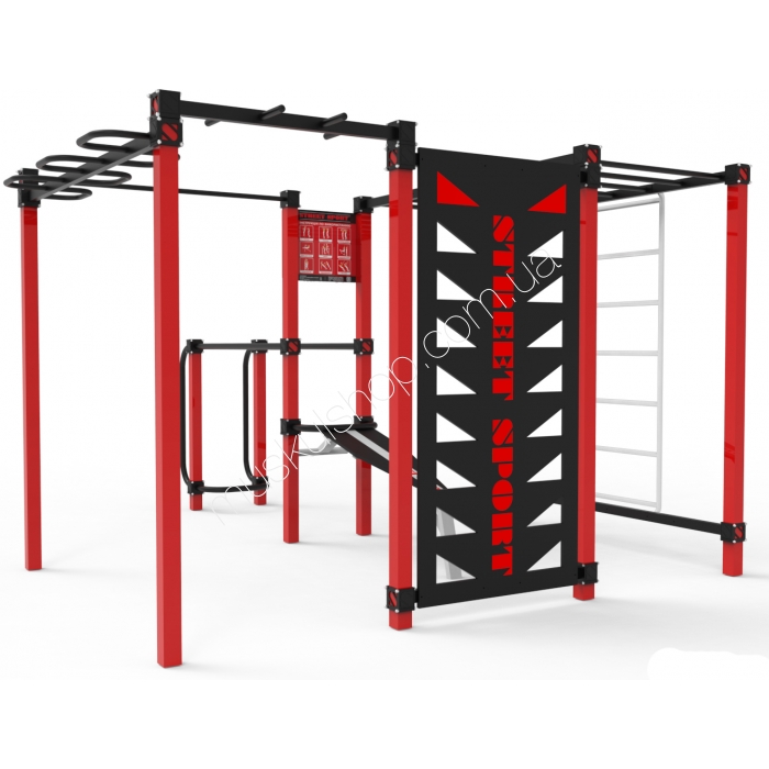 StreetSportСпортивный комплекс StreetSport S-20Спортивный комплекс StreetSport S-20 обладает достаточно крепким каркасом, что создан из высокопрочного металлического профиля, дабы выдерживать большие нагрузки. Дабы комплекс не упал во время эксплуатации, его необходимо вкопать, или забетонировать, что предотвратит опасность получения травмы. Наличие сразу нескольких элементов в данном комплексе обеспечивает развитие всех групп мышц и проработку даже глубочайших. Покрытие каркаса при помощи краски обеспечивает надежную защиту от любых погодных факторов, а также от быстрой смены температуры. Спортивный комплекс СтритСпорт С-20 позволяет не только развить мышцы пользователя, но и укрепить иммунитет и улучшить координацию. Выполняя различные комплексы упражнений, вы сумеете улучшить свою осанку и развить силу, а также укрепить здоровье.