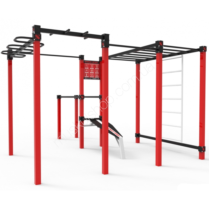 StreetSportСпортивный комплекс StreetSport S-20.1NСпортивный комплекс StreetSport S-20.1N рассчитан на использование взрослыми и подростками, с целью тренировок на свежем воздухе для лучшего результата. Поскольку представленное оборудование можно разместить даже на площадке у вашего дома, он будет доступным любому пользователю. Каркас оборудования создан из прочной и надежной стали для гарантии долговечности всего комплекса. Такой комплекс вы можете самостоятельно дополнить и другими элементами, дабы усовершенствовать его. Спортивный комплекс СтритСпорт С-20.1Н прост в установке и использовании, а потому его можно назвать универсальным средством для тренировок всей семьей. Материал рамы комплекса окрашен при помощи защитной краской, которая не боится влаги и не пропускает её, защищая раму от коррозии.
