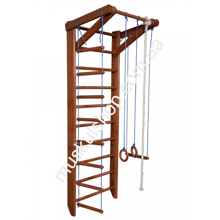 Спортуголок Sportbaby Орех 2-220 представлен в оригинальном ореховом оттенке, в целом комплекс выполнен из сосны и бука. Укомплектован уголок следующим: стенкой с турником, прочным канатом, спортивными кольцами, трапецией для занятий, лестницей для пиратов из веревок, крепежным комплектом, а для полного спокойствия рекомендуем приобрести мат. Крепится комплекс до стенки, очень просто и надежно. Очень прочный и надежный уголок, малыш может смело заниматься несколько лет. Турник способен выдерживать и взрослого до 100 кг, а тренировки на пару с детьми пойдут им на пользу. Дизайн комплекса не отставит равнодушного никого, он принесет массу пользы, радости и удовольствия абсолютно каждому ребенку.