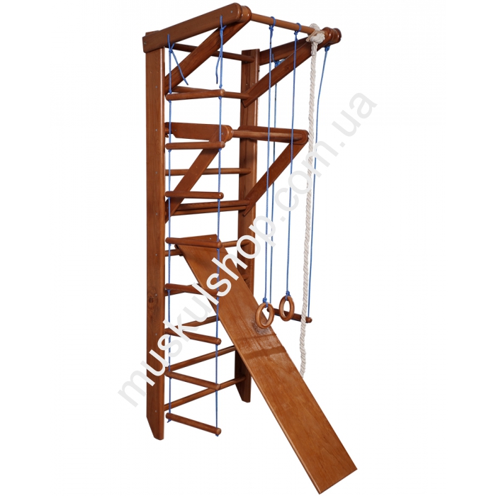 Спортуголок Sportbaby Орех 3-220 прочный, удобный и многофункциональный комплекс. Винты, отверстия уголка закрыты универсальными заглушками. Дизайн комплекса не отставит равнодушного никого, он принесет массу пользы, радости и удовольствия абсолютно каждому ребенку. Крепится комплекс до стенки, очень просто и надежно. Укомплектован уголок следующим: детским деревянным турником, доской для пресса, стенкой с турником, прочным канатом, спортивными кольцами, трапецией для занятий, лестницей для пиратов из веревок, крепежным комплектом, а для полного спокойствия рекомендуем приобрести мат. Турник способен выдерживать и взрослого до 100 кг, а тренировки на пару с детьми пойдут им на пользу.