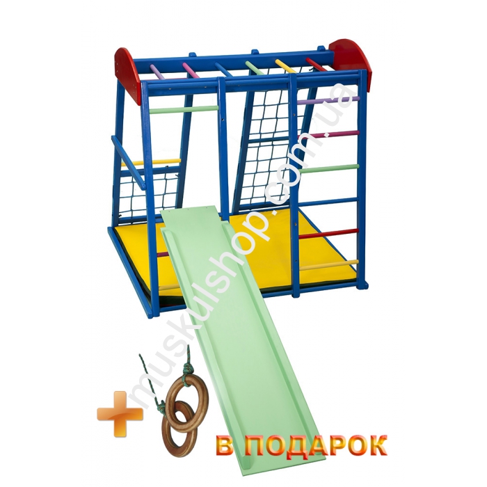 Детский домашний спорткомплекс Sportbaby Юнга Мини порадует абсолютно любого малыша своими красками и функциональностью. Комплекс рассчитан на детишек раннего возраста. Он комплектуется рукоходом, шведской и гладиаторской стенкой, 1,5 детской горкой для спуска, матом для упражнений и спортивными кольцами. Он заменит привычный детский уголок, внесет новые эмоции в жизнь малыша, наполнит силами его детский организм, а также поднимет иммунитет. Все детали выполнены из прочного сосны, а рукоход изготовлен из бука, данное изделие пропитано специальным антисептиком. Комплекс выдерживает нагрузку свыше 40 кг, при этом масса самого изделия не превышает 25 кг, отлично подойдет детишкам от пяти месяцев до шести лет.