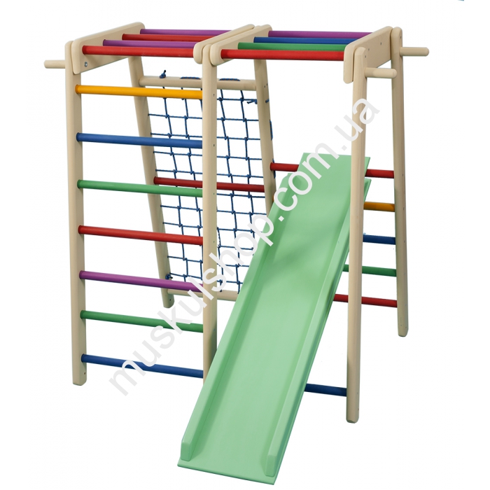 Детский спорткомплекс Sportbaby Спартак для домашнего и уличного пользования хорошо развивает детские мышцы рык и ног, тренирует их выносливость, вырабатывает иммунитет. Кроме этого он прочный, надежный, способен выдерживать, находясь на улице различные природные катаклизмы. Данный комплекс состоит из гладиаторской сетки, детской горки для спуска, шведской стенки и рукохода. Устанавливать такой комплекс можно в любом месте, как в домашних условиях, так и на улице. Конструкция выполнена из сосны и бука, представлен в ярком цветном цвете. Комплекс выдерживает нагрузку до 80 кг, при этом масса самого изделия не превышает 35 кг. Позвольте детворе весело провести время!
