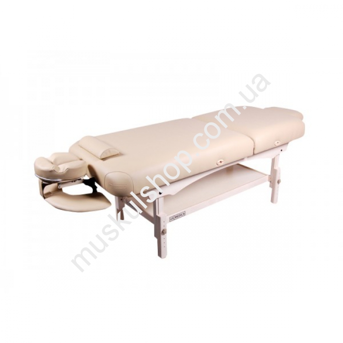 Us Medica Olimp рассчитан на победителей. Стол укомплектован: съемным подголовником, регулируемыми подлокотниками, имеет круглые борта, а также валик. Стол прочный, стационарного вида, выполнен из бука, способен выдерживать пациента с общим весом до 350 кг. Полочка для рук поможет сполна насладиться массажем. Вес стола составляет 35 кг. Стол подойдет пациентам, страдающих лишним весом, а также для людей с большим ростом. Покрытие стола из качественного кожзаменителя. В каркасе находятся усилители для создания лучшей прочности. Валик для шеи, поможет принять правильное положение в момент массажа. Стол используют для лимфомассажей, спа-процедур, а также рефлексотерапии. Для изготовления стола применялись исключительно экологически чистые материалы.