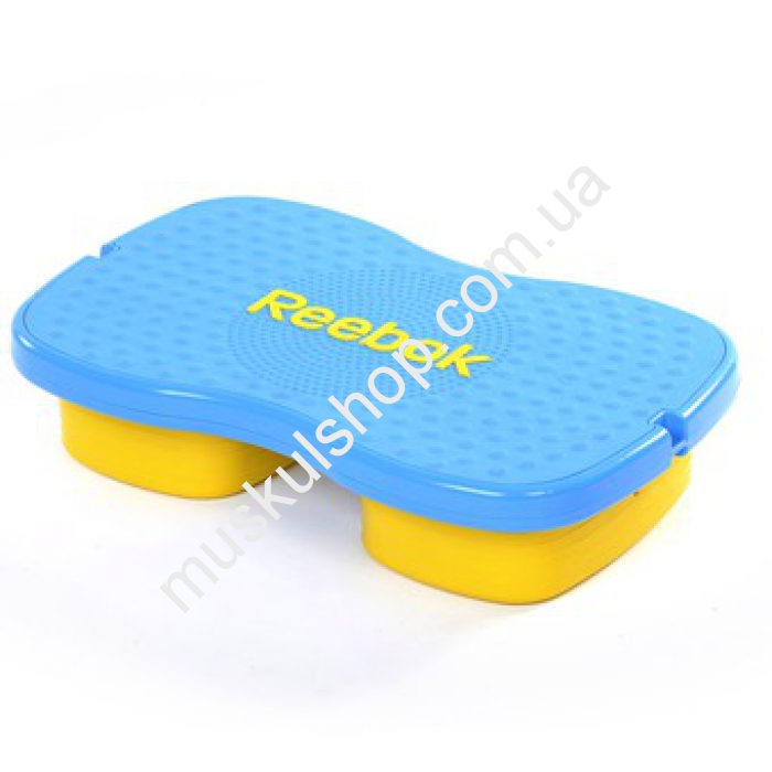 Степплатформа Reebok выполнена в голубом цвете, по центру размещена фирменная надпись бренда, общая масса составляет почти 8 кг, она способна выдерживать 110 кг общего веса пользователя. Платформа тренирует группы мышц по всему телу, особенно ног, поясницы и брюшного пресса. Нагрузка регулируется благодаря регулятору. Конструкция прочная, не шаткая, применяется для тренировок с двух сторон, обладает нескользящим верхним покрытием. Снаряд подходит для зальных и домашних тренировок. Тренажер поможет вам обрести желаемую физическую, рельефную форму тела. Платформа воздушного типа, хорошо подходит для групповых и специально разработанных программ.