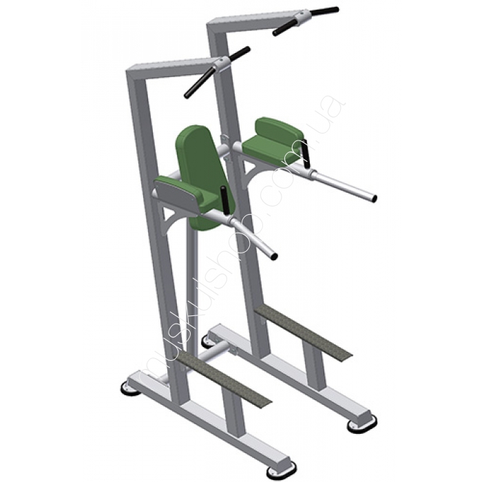 FGMAСтойка комбинированная FGMA ТК 117Стойка комбинированная FGMA ТК 117 можно назвать аналогом брусьев, которые были спроектированы в виде стойки и позволяют выполнять множество разнообразных упражнений на развитие всех мышц. Данное приспособление прекрасно подходит для поднятия ног, отжиманий и подтягиваний при использовании разного типа хвата. Наличие рукояток с мягкими накладками обеспечивает комфортность и надежность хвата при условии, что ладони пользователя не будут получать травмы. Стойка комбинированная ФГМА ТК 117 оснащается мягкой спинкой и подушками под руки спортсмена, которые препятствуют травмированию при тренировках и обеспечивают дополнительный комфорт. Для устойчивости оборудования имеются небольшие накладки, что играют роль компенсаторов неровностей напольного покрытия.