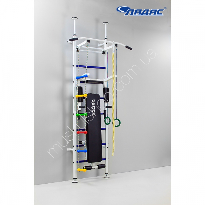 Стойка Ладас Demos поможет детям и взрослым научиться выполнять разные физические упражнения, накачать мышцы и поднять иммунитет. Укомплектована модель стенкой с перекладинами, которые обвиты в пластиковые трубки, прочным и надежным турником, уникальными брусьями, лавкой для накачки пресса. Выполнена модель с прочного металла, высшего класса, крепится распорками и к стенке одновременно. Стойка оказывает положительное физическое влияние, поможет всегда быть в форме, поднять общий тонус организма, подкачать важные группы мышцы рук, шейного отдела, поясницы и пресса. Стойка бело-синего цвета способна выдерживать до 120 кг нагрузку, рассчитана исключительно на взрослых или на большую семью.