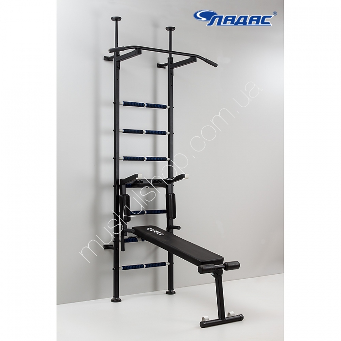 Стойка Ладас модель Energy-Lux способна выдерживать до 120 кг нагрузку, рассчитана исключительно на взрослых или на большую семью. Стойка оказывает положительное физическое влияние, поможет всегда быть в форме, поднять общий тонус организма, подкачать важные группы мышцы рук, шейного отдела, поясницы и пресса. Стойка помогает начинающему спортсмену выполнить разные физические упражнения, укрепить все мышцы торса спортсмена. Укомплектована модель стенкой с перекладинами, которые обвиты в пластмассовые трубки, широким, прочным и надежным турником, лавочкой для качания пресса, уникальными брусьями под штангу. Модель выполнена с прочного металла, высшего класса, представлена в черном цвете, крепится распорками и к стенке одновременно.