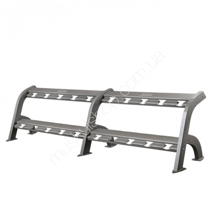 Inter AtletikaСтойка под гантели InterAtletika X-Line X409Стойка под гантели InterAtletika X-Line X409 необходимое оборудование для любого коммерческого спортивного центра и домашнего тренировочного зала. Одна из особенностей такой стойки состоит в том, что она способствует поддержанию чистоты и порядка в помещении, гарантируя вам безопасность. Места под гантели не позволят снарядам соскальзывать в то время, как они будут храниться на стойке. Стойка под гантели ИнтерАтлетика Икс-Лайн Икс409 отличается своей усиленной конструкцией, которая гарантирует возможность выдерживать большие веса, не поддаваясь деформациям. На ножках данного оборудования имеются компенсаторы неровностей пола, которые являются гарантией устойчивости стойки. Порошковое напыление на каркасе стойки выступает в качестве защиты от любого негативного воздействия и от появления коррозии.