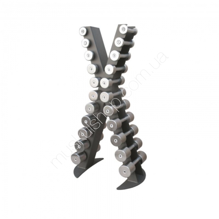 Inter AtletikaСтойка с набором InterAtletika X-Line X410Стойка с набором гантелей хромированных InterAtletika X-Line X410 особое, высокопрочное оборудование, которое легко может разместить на себе набор из десяти пар гантелей, когда каждая из таких пар отличается своим весом и габаритами. Усиленная конструкция стойки может выдерживать большие нагрузки, не деформируясь даже при особо продолжительном сроке службы. Каждое из мест хранения гантелей обеспечивает снаряду надежное расположение, не позволяя тому падать, или скатываться, тем самым, гарантируя безопасность для пользователя. Стойка с набором гантелей хромированных ИнтерАтлетика Икс-Лайн Икс410 обеспечивает вам возможность сразу после приобретения и установки приступить к вашим тренировкам, поскольку у вас уже не будет необходимости ещё отдельно покупать и снаряды. Каждая из гантелей обладает удобной рукояткой, которая обеспечивает не только надежность хвата, но и правильное положение рук пользователя.