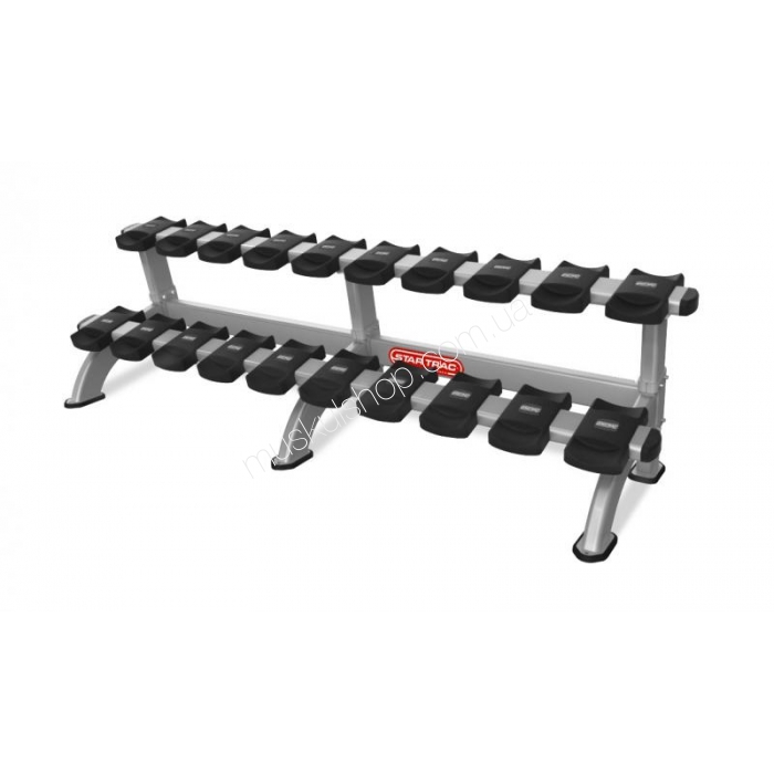 StarTracСтойка Star Trac Inspiration R8010Стойка Star Trac Inspiration R8010 простая конструкция, которая позволяет хранить одновременно в одном месте несколько пар гантель. Она идеально подойдёт под гантели любого размера и веса. Если вы хотите, чтобы ваше помещение оставалось в чистоте, а чтобы необходимые снаряды не были разбросаны по углам, то представленная подставка идеально справиться с этим вопросом. Амортизационные подпятники позволяют исключить необходимость крепления аппарата к полу.