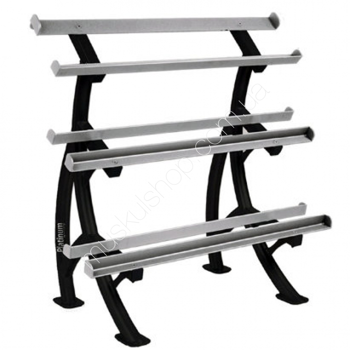TunturiСтойка Tunturi Platinum Dumbbell RackСтойка Tunturi Platinum Dumbbell Rack отличается наличием особо прочной стальной рамы, которая способствует удержанию большого веса. Порошковая эмаль служит как защита для корпуса, дабы на нём не появлялись следы коррозии. Держатели для гантелей надёжно фиксируют их и не позволяют выпадать с мест фиксации, а потому исключена возможность получения травмы. Благодаря данной конструкции вы всегда сможете держать помещение в чистоте, поскольку все гантели будут находиться в одном месте.